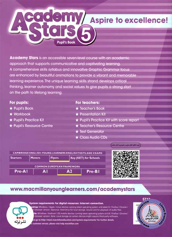 در فروشگاه نشر برته با هدف جلب رضایت شما عزیزان و ایجاد بستری امن و مطمئن برای خرید اینترنتی، ضمن فروش تمام محصولات به قیمت منصفانه، خدمات پشتیبانی و مشاوره رایگان نیز ارائه میشود تا علاوه بر ترویج فرهنگ آموزش زبان انگلیسی، مشتریان محترم از خرید خود رضایت داشته باشند. پس به دلیل اینکه قیمت کتاب ACADEMY STARS در فروشگاه برته، با تخفیف ویژه در نظر گرفته شده، شما عزیزان میتوانید این مجموعه کتاب را با صرف مبلغ پایینتر تهیه کرده و در هزینههای خود صرفهجویی کنید.