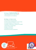 این کتاب (تمرین و آزمون) با هدف آماده سازی برای آزمون Goethe-Zertifikat A2،هم برای مطالعه کلاسی و هم شخصی، طراحی شده و شامل موارد زیر می باشد: معرفی جامع آزمون، برنامه گام به گام آموزش و تمرین در هر 4 مهارت (خواندن، شنیدن، نوشتن و صحبت کردن)، 3 مدل آزمون شبیه سازی شده کامل، 2 قسمت تکرار واژگان (رسانه، تحصیل و کار، خانه و سفر، … ) و دستور زبان(حروف اضافه و ربط، حروف تعریف در انواع حالات، اسامی و ضمایر، صرف صفات، …) ، نکات مفید و راهبرد های برای پاسخ به آزمون ها، پاسخنامه برای ارزیابی شخصی و متن های بخش نوشتاری وفایل شنیداری قابل دانلود برای قسمت تمرین.