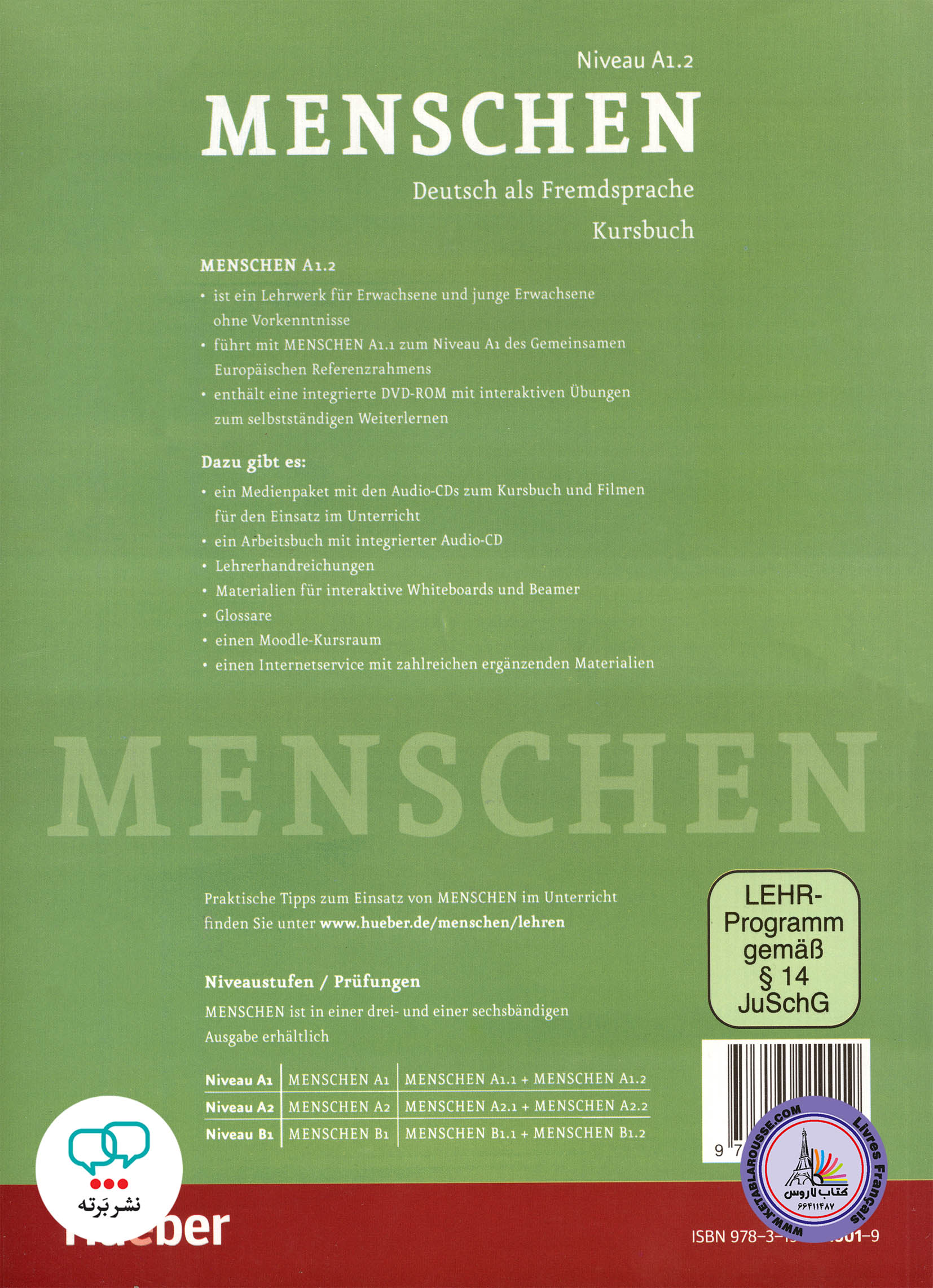 چنانچه قصد خرید کتاب Menschen A1.2 با تخفیف را دارید، میتوانید سری به فروشگاه نشر برته بزنید و از قیمت کتاب Menschen A1.2 مطلع شوید. بیشتر کتابهایی که در برته به فروش میرسند شامل تخفیف های 50 تا 60 درصدی میشوند.