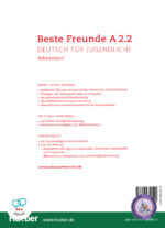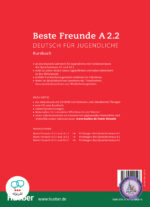 این کتاب که برای نوجوانانی است که دارای پیش زمینه ای از زبان آلمانی در سطوح A1,A2.1 می باشند، دارای 9 درس است که در 3 قسمت 3 درسی تفکیک شده و تمرکز هر یک از 3 درس روی یک شخص و محیط او قرار دارد. زبان آموز با موضوعاتی (مانند فضاهای عمومی، کافه و فروشگاه، شغل و کار، احوالات شخصی، اعداد از 100 به بالا، زبان و فهماندن، آب و هوا و گزارش، پروژه و انجام کار، …. ) و موارد دستوری ( حرف اشارهdies، ضمایر شخصی در حالت مفعولی به واسطه، حالت التزامی فعل haben، افعال حالت دهنده در گذشته، حرف ربط wenn,trozdem, ، پرسش غیر مستقیم، افعال با حرف اضافه های für, über, auf, mit, bei و seit,aus حرف های تعریف پرسشیwas für ein, welch ) همراه با تمرین های قرار گرفته شده در کتاب کار با فایل شنیداری قابل دانلود و تمرین های، فایل شنیداری مربوط به کتاب درس مرحله به مرحله توانایی خود را بالاتر می برد و این امکان نیز را دارد که خلاصه ای از دستور زبان کتاب بعلاوه و فهرست واژگان را در انتهای کتاب مطالعه کند. همچنین می تواند برای خدمات و مطالب بیشتر به آدرس اینترنتی زیر مراجعه کند: www.hueber.de/beste-freunde