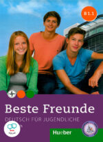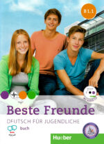 کتابی که مشاهده می فرمایید دارای 9 درس تفکیک شده به 3 قسمت 3 درسی است و محوریت هر یک از 3 درس روی یک شخص و محیط او قرار دارد. طراحی این کتاب با موضوعاتی ( مانند مهمانی، پول و خرید، احساس و زوجیت، اردو و جاهای دیدنی، انسان و حیوان، مدرسه و خوراکی، برنامه اپلیکشن و توصیف مسیر، یادگیری زبان خارجی و دوزبانگی، خلاقیت و تجربه، ….) و دستور زبان (مانند جمله مصدری،حروف ربط، um zu, damit، während,bevor,nachdem، zwar,aber،پرسش غیر مستقیم با ob،حروف اضافه مکانی um, über,gegenüber، جملات و ضمایرموصولی ، حروف ربط obwohl, als ، … ) برای زبان آموزان نوجوانی است که دارای پیش زمینه ای در سطوح A1,A2 می باشند. به منظور آشنایی بیشتر زبان آموز با فرهنگ کشور آلمان، در انتهای هر سه گانه قسمتی در رابطه با جامعه آلمانی زبان گنجانده شده است، علاوه بر این تکرار خلاصه ای از 3 درس قبل نیز در آن بخش وجود دارد. زبان آموز همچنین می تواند برای خدمات و مطالب بیشتر به آدرس اینترنتی زیر مراجعه کند: www.hueber.de/beste-freunde